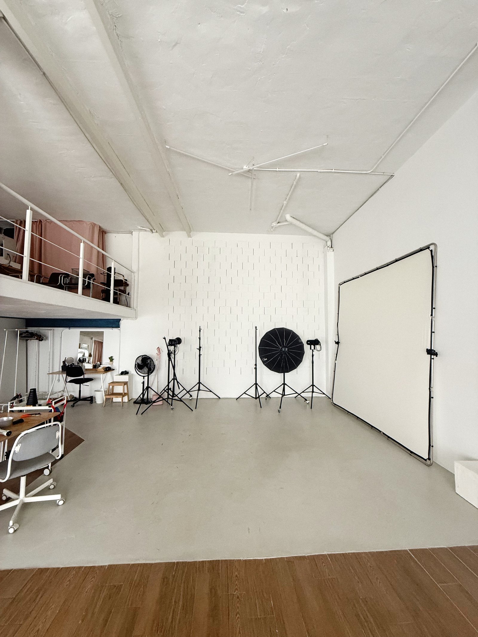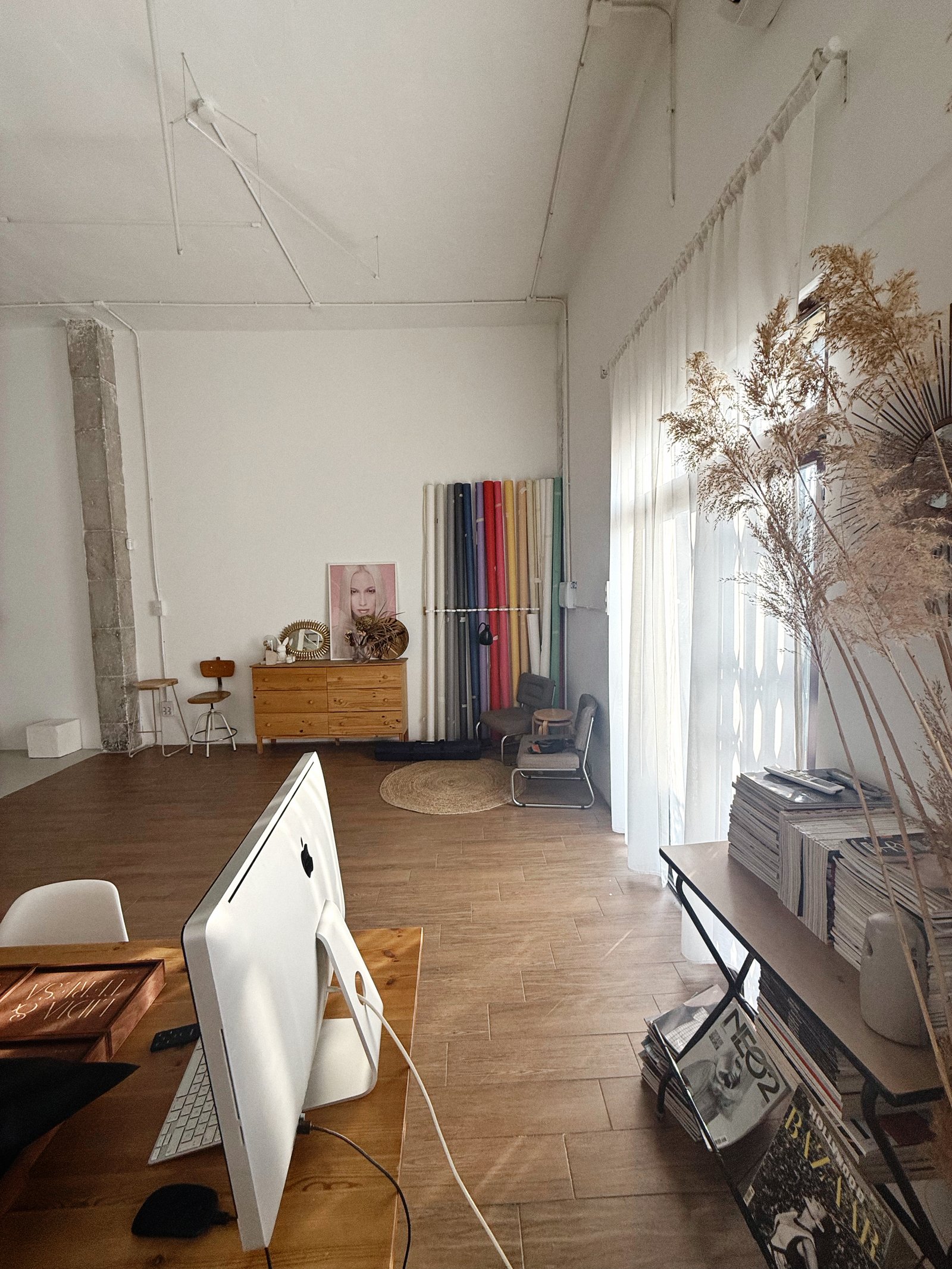 Nuestro estudio, ubicado en Av. de Alicante, 2 (Churra, Murcia), cuenta con unos 100 m² distribuidos en diferentes zonas pensadas para cubrir todo el proceso de producción. El plató principal, de 25 m² útiles y 4,5 m de altura libre, dispone de dos paredes blancas y suelo de hormigón, lo que permite múltiples configuraciones de luz y montaje. El espacio incluye una zona de maquillaje profesional con iluminación dedicada, una área de descanso con sofá y cocinita equipada, ideal para sesiones largas o equipos de trabajo amplios. Disponemos de flashes, focos de luz continua y fondos de distintos colores, adaptables a producciones de moda, retrato, producto o vídeo. Diseñado para la creatividad, el estudio combina un ambiente funcional y acogedor, ofreciendo flexibilidad y comodidad en cada sesión.